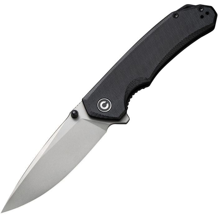 4.5" (11.43cm) closed. 3.5" (8.89cm) stonewash finish 14C28N Sandvik stainless blade. Black G10 handle. Extended tang. Lanyard hole. Pocket clip. Thumb stud. Boxed.