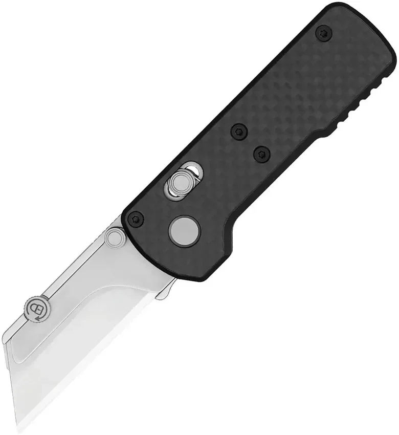 3.38" (8.59cm) closed. 2" (5.08cm) stainless blade. Carbon fiber handle. Extended tang. Thumb stud. Pocket clip. Quick blade change mechanism. Replaceable blade. Boxed.